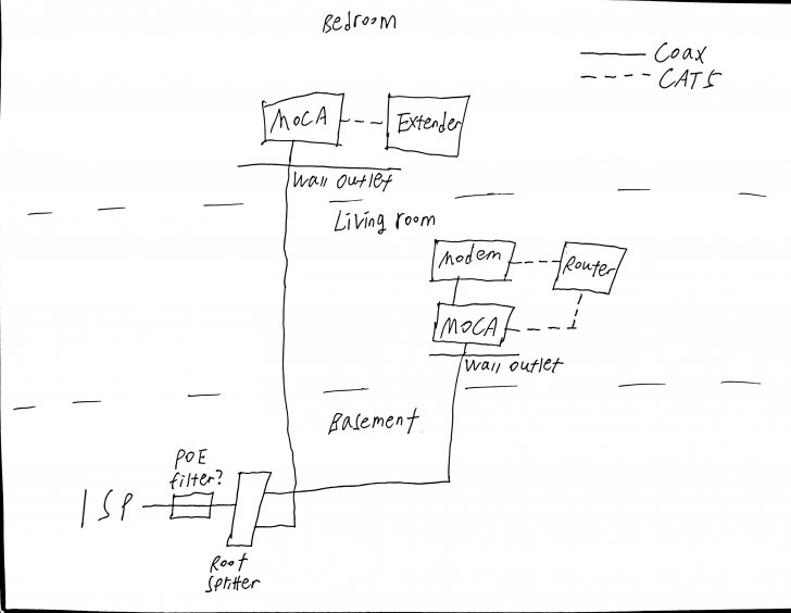 It is based on moca 2.0/2.5 and uses the existing coaxial cabling. In version 5 of my network layout, i perceive i need to build a wired network as follows: One adapter between the splitter and the upstairs modem, and a second adapter . At the core of the installation is the coax network (moca) adapter, which i purchased. Below is a diagram of one possible coax network in a .